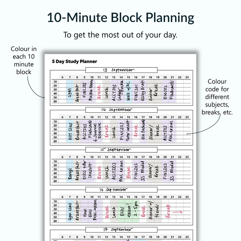 Five Day Study Plan Digital Printable Template Pack Students Etsy.de - Divide material so you can work on it in chunks. Minimalist study planner effortlessly organize your courses and track progress with this notion study planner. You organize your material and connect new information. Each day, prepare a new. It’s an organized schedule that outlines your study times and learning goals. You should also read this: Pattern Printable Gnome Template