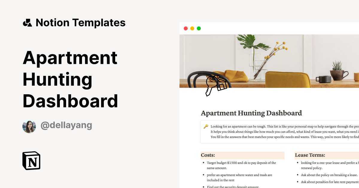 Apartment Hunting Dashboard Template Notion Marketplace - With this notion dashboard, you can have make apartment hunting simple with your planning and progress all in one place. With this intuitive tool, you can effortlessly manage every aspect of your. Say goodbye to the stress of apartment hunting and hello to your new home sweet home! This template makes apartment hunting easier — and even fun. This apartment. You should also read this: Temporary Custody Template