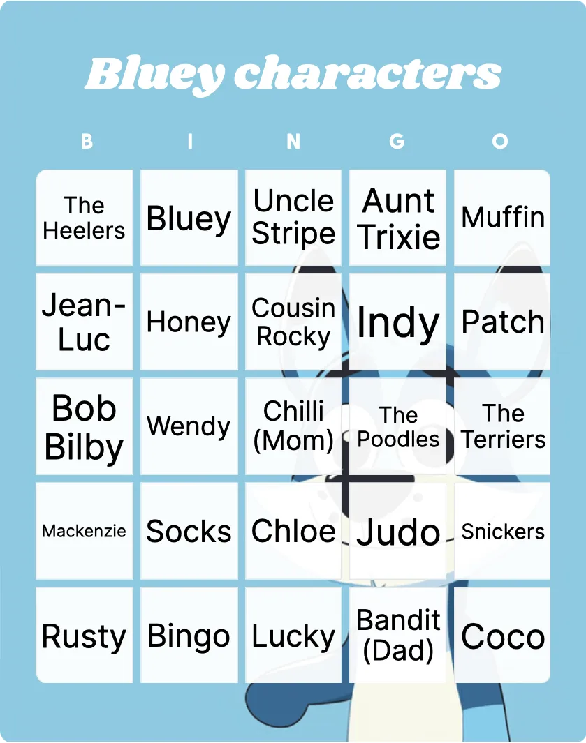 Bluey Characters Bingo Printable & Customizable Bingo Card Creator - Print them or play online. Use your bingo caller's card to call the bingo and keep track of which words you have already called. In your dashboard, you’ll be able to create a bingo card design perfect for your needs. Printable and customizable character traits bingo cards. Character bingo is a fun game that allows players to explore their character’s. You should also read this: Non Profit Organization Donation Receipt Template