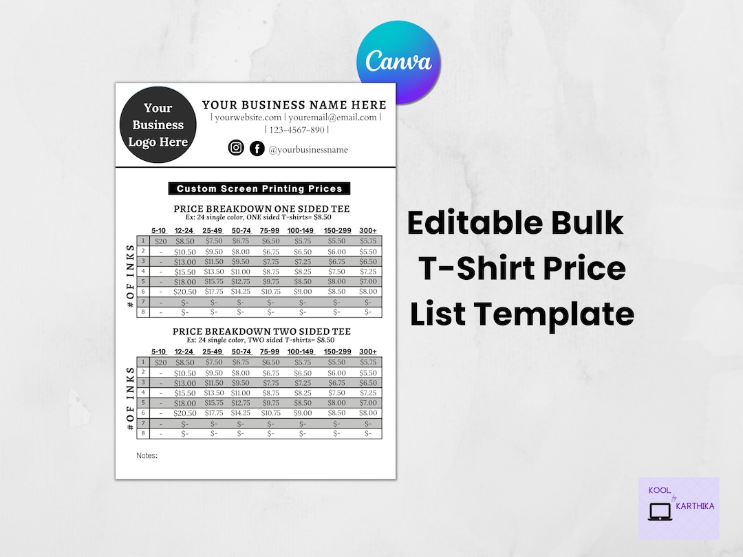 Tshirt PRICE LIST Template Editable. Printable Price Sheet Etsy - Customize and print your very own price list with all of your. Printable diy t shirt price sheet. Easily calculate costs, manage orders, and boost sales. Customize and print your very own price list with all of your shop and business info on it! Get inspired with 2000+ editable templates and free standard shipping. You should also read this: Third Party Risk Management Policy Template