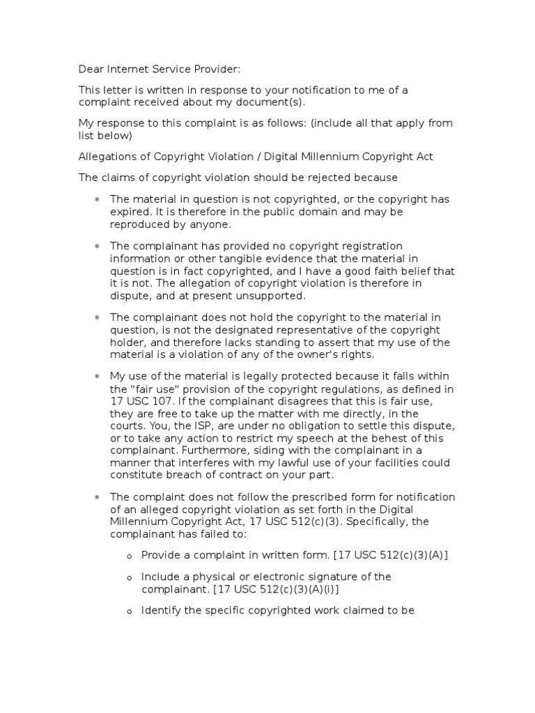 DMCA Policy/Notice Template TermsFeed - , which was posted at. If you believe that your form or other content on jotform was removed pursuant to a dmca takedown notice by mistake or due to misidentification of the content, you may contest the. Below we include a sample dmca § 512(g) counternotice to a § 512(c) webhost provider, for fair use of copyrighted material. Below we. You should also read this: Communication Email Template