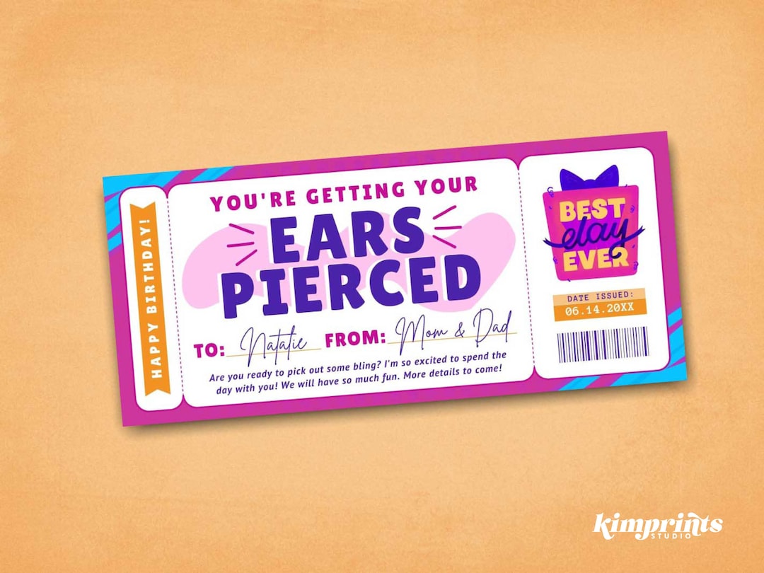 Ear Piercing Ticket Template, Piercing Souvenir Voucher, Ears Pierced - It’s a printable pdf with editable text, so you can customise it and have it ready in minutes. This listing is a printable gift certificate for getting ears pierced. This ear piercing gift voucher template is the perfect diy gift for a birthday surprise. This christmas ear piercing gift voucher template is an instant download. Download this printable christmas ear. You should also read this: Ishikawa Template Free