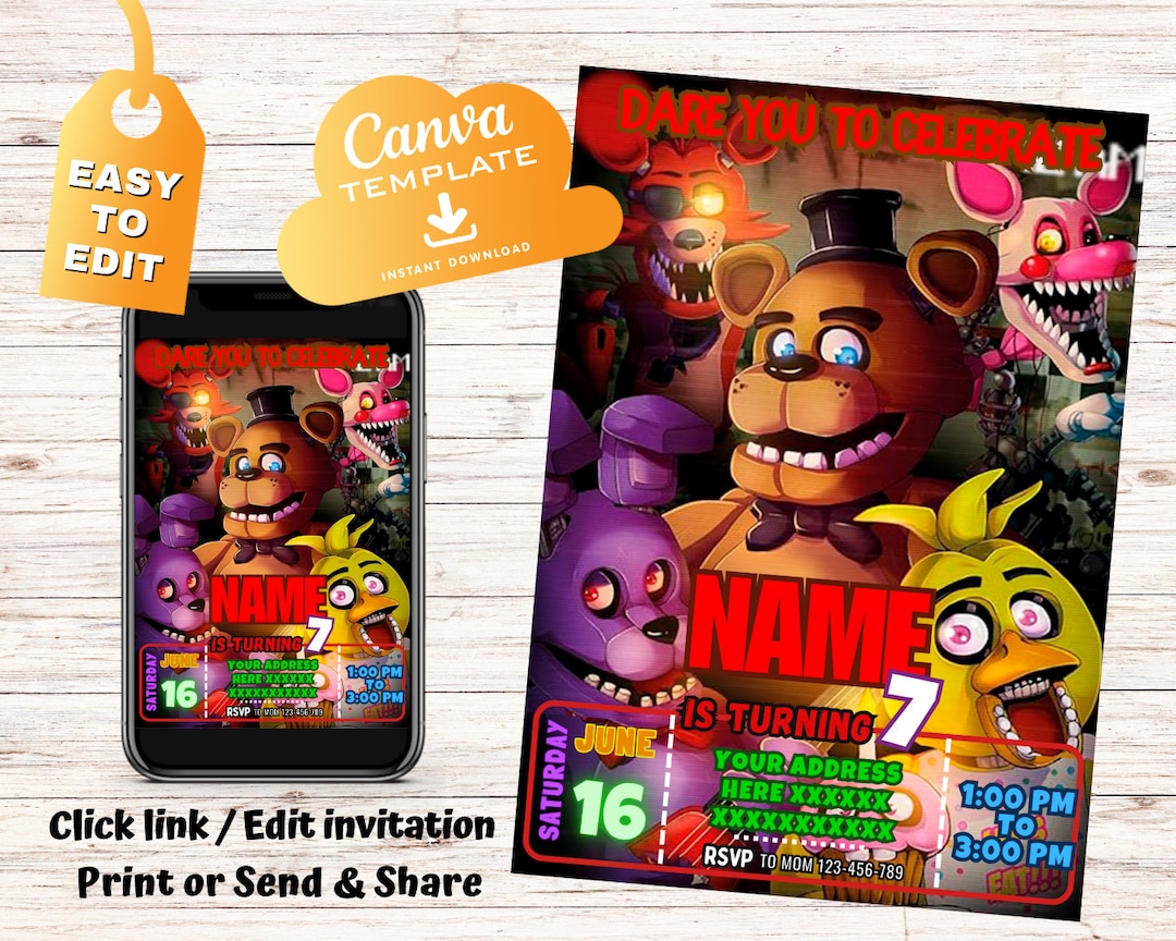 Five Nights at Freddys Birthday Invitation FNAF Invite Canva Digital - It's the perfect way to invite your guests to your five nights at freddy's inspired party with custom template. Free printable fnaf movie party invitations. Pdf has type & print option. Check out our five nights at freddys invitations digital selection for the very best in unique or custom, handmade pieces from our invitation templates shops. Create free five nights. You should also read this: Broker Of Record Letter Template