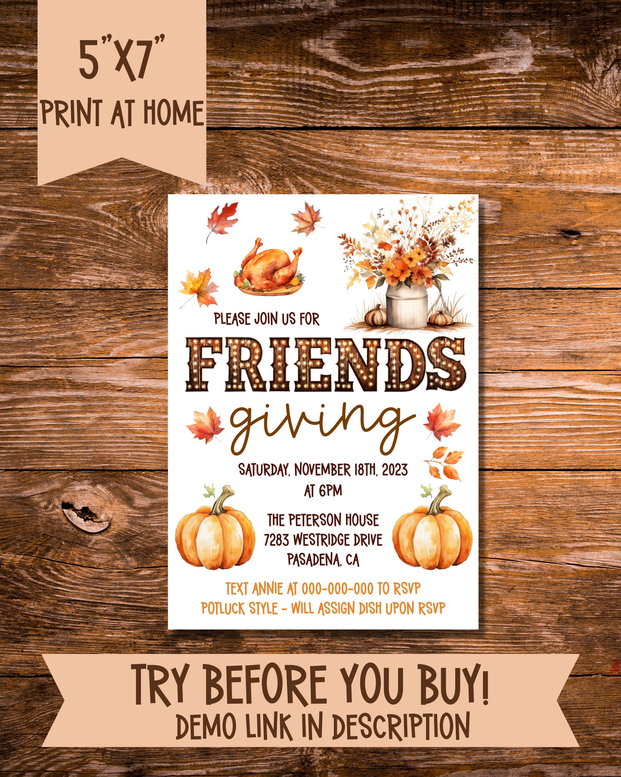 Rustic Friendsgiving Invitation Template Thanksgiving Dinner Etsy - Download these sweet and funny friendsgiving invitations and printable menus for your party. We’ve done the work for you and gathered our favorite friendsgiving invitation ideas for party motifs, themes, and festive activities below—as well as sample friendsgiving. Easily customize 'friendsgiving' thanksgiving invitation design with your text and photos. Choose from tons of unique invite designs that you can send. You should also read this: Corporate Dissolution Resolution Template