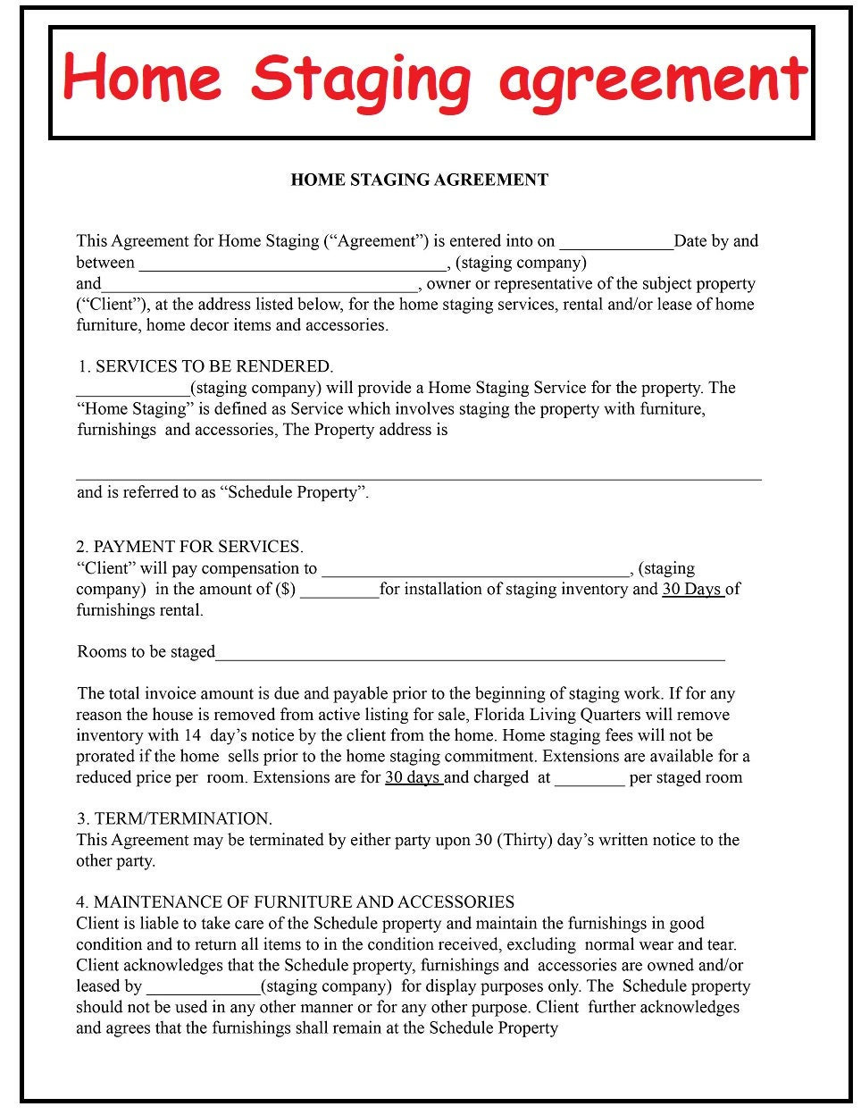 Editable Home Staging Contract Template Property Staging Etsy - This type of sample contract is designed specifically for staging residential properties. Improve your document workflows with signnow. Up to $50 cash back a home staging contract is a written agreement between a homeowner or real estate agent and a home staging company. Seattle staged to sell, llc personnel will require total design discretion and full access to the home. You should also read this: Tbr List Template