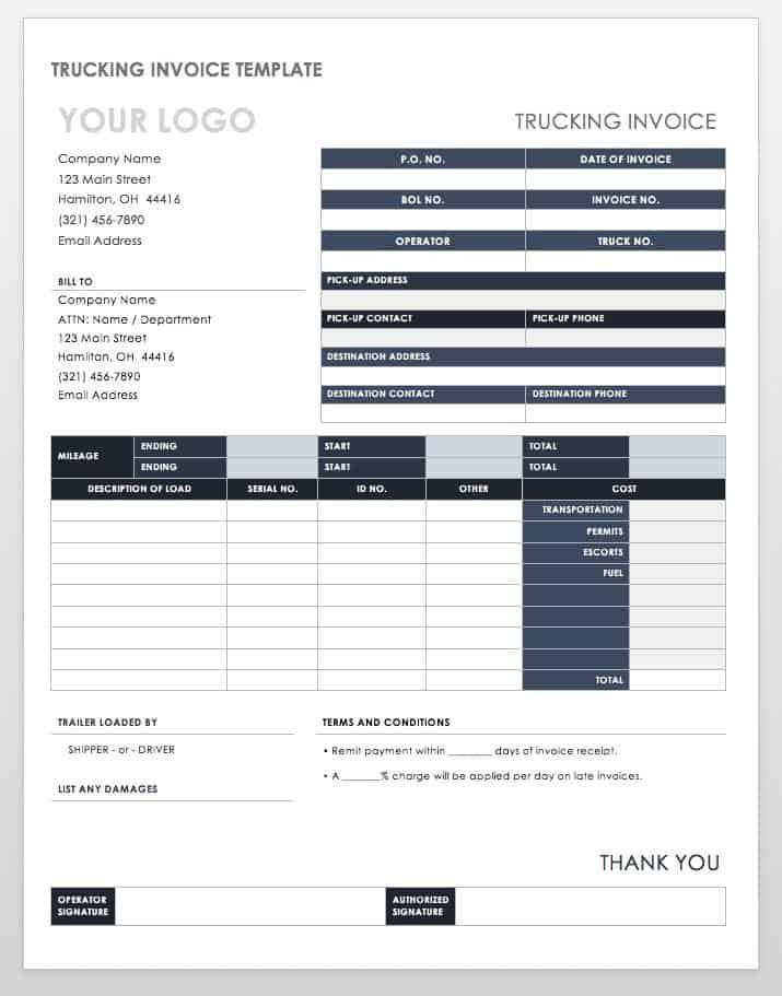 55 Free Invoice Templates Smartsheet - Download real trucking invoice in pdf, doc and excel formats. What does the commercial invoice template contain? These downloadable templates are ready for immediate. A blank commercial invoice template is designed to capture all the necessary details for a seamless international. Invoice templates in excel for trucking business. You should also read this: Nursing Care Plan Templates