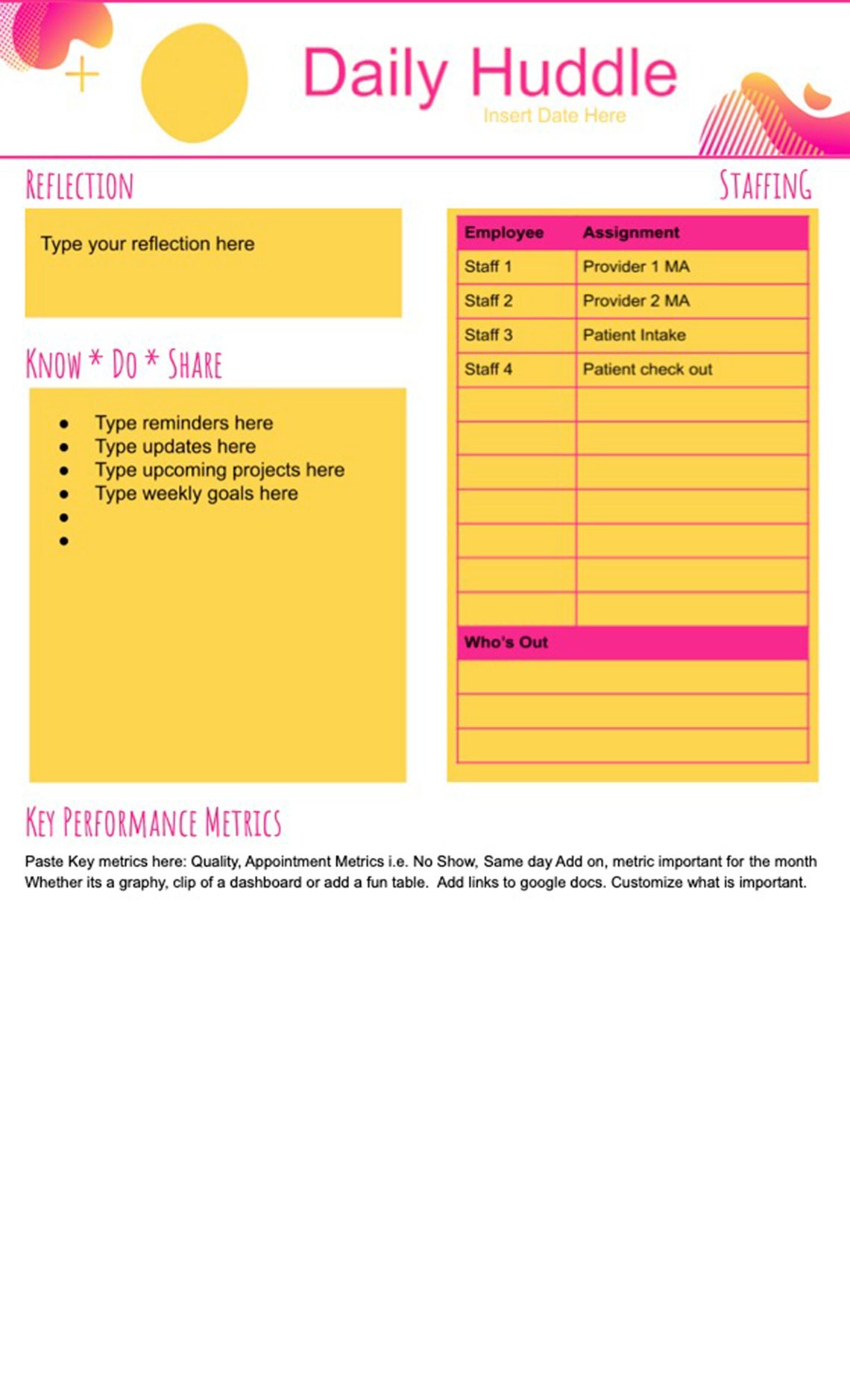 Daily Huddle Template for Medical Practiceofficeclinicgroup Etsy - This worksheet is a tool to introduce the idea of huddles and help your team discuss what they might get out of huddles and how to make the best use of this time. Below is an example of how you could structure. As the huddle gets solid, they can share about it with peers. It focuses on a specific team,. You should also read this: Christmas Stationery Templates Word Free