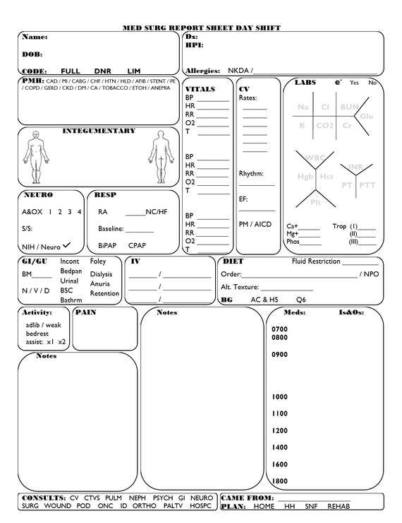 Medsurg Nurse Report Sheet Day Shift Etsy - Paperless solutions24/7 tech supportform search engine 4.5/5 (10k reviews) You should also read this: Operating Agreement Template Word