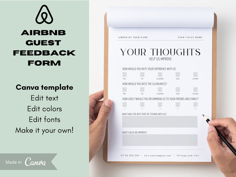 Airbnb Guest Feedback Form Editable Canva Template Comment Etsy - Streamlining cleaning and turnover processes. On the flip side, it can help hosts know if they should let their property to certain guests. Discover a collection of airbnb guest review examples tailored for hosts. Here are some airbnb guest review templates you can go ahead and use, simply copy and paste the ones you like and change the name for.. You should also read this: Printable Shirt Template