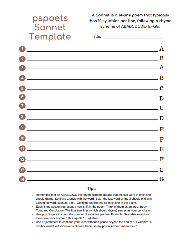 Template — PSPOETS - Start by entering a phrase or word that will create a unique sonnet. With the sonnet generator, craft personalized and creative sonnet poems effortlessly, adding various themes, tones, languages, and more. Write your rough draft on this sheet. Master traditional forms or create your own poetic twist! Learn how to write a sonnet with these tips on structure, rhyme, and. You should also read this: Graduation Cap Template Free Download