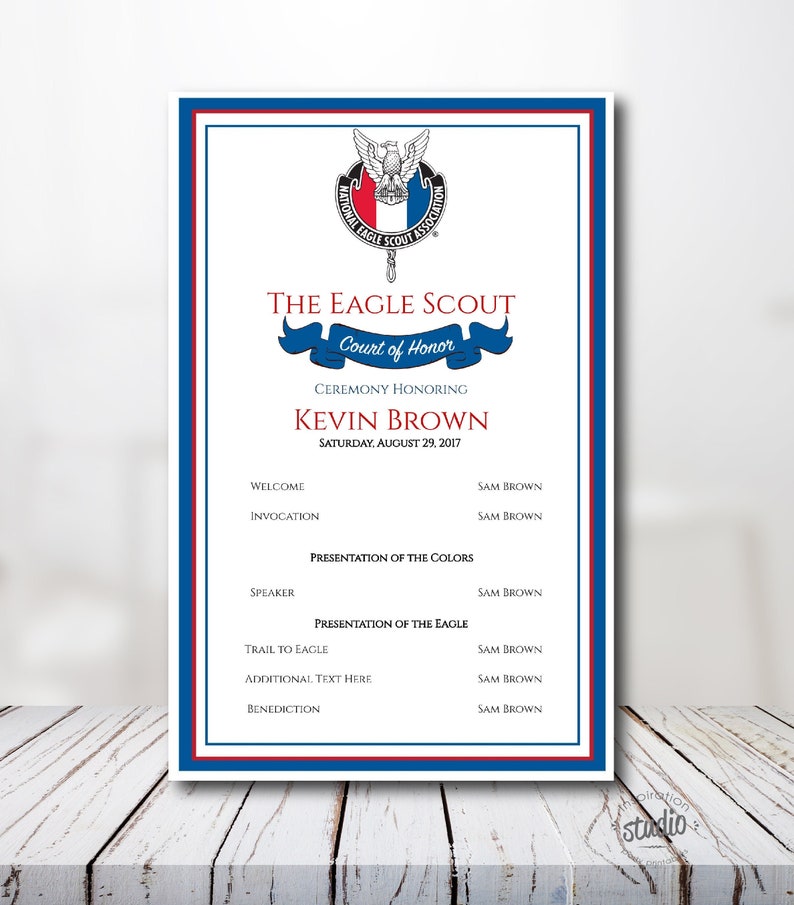 Eagle court of honor Program Template Customizable DIY Bobotemp - Use the free scout court of honor program template below to. Example of an eagle invitation appropriate for handing out to the scouts. Print option 1) i design and print the entire program for you: Three eagle court of honor ceremonies are presented here. You can then print the inside. You should also read this: Earnest Money Contract Template