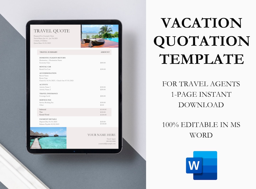 Travel Agent Quote Template Vacation Quote Template Travel Etsy - Available in a4 & us letter sizes. Explore professionally designed travel quotation templates in word, free and customizable for stunning, printable results. A travel agency quotation template is a formal statement that a travel agent provides to the customer on his demand for a specific trip or tour at special prices and a. Our price quote samples come with preformatted. You should also read this: Sports And Exercise Science Ib Ia Template